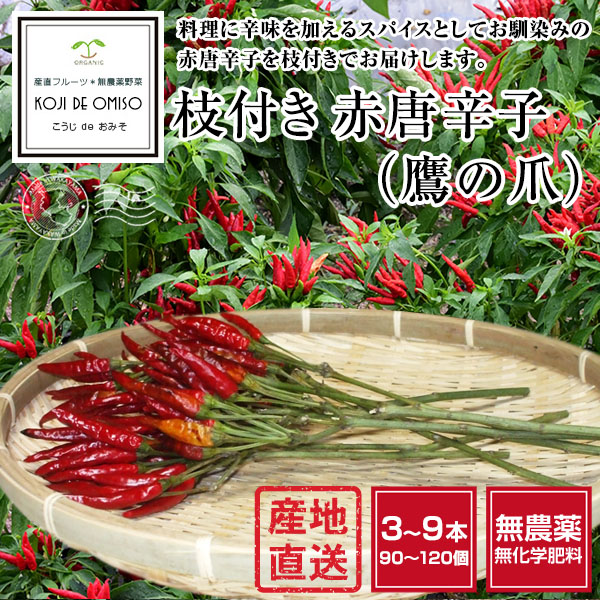 料理に辛味を加えるスパイスとしてお馴染みの赤唐辛子を枝付きでお届けします。