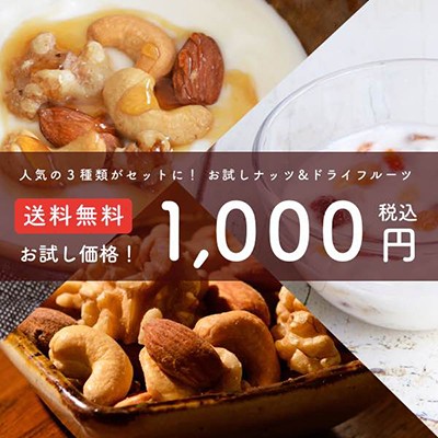 1000円 ポッキリ! 人気の 3種類 を試せるドライフルーツ & ナッツ セット