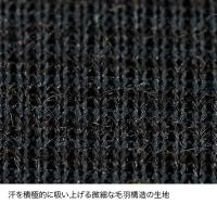 メリノウール本来の保温・調湿性と高機能ポリエステルの吸汗速乾加工を兼ね備えているため、蒸れにくく汗を素早く乾かします。