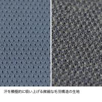 メリノウール本来の保温・調湿性と高機能ポリエステルの吸汗速乾加工を兼ね備えているため、蒸れにくく汗を素早く乾かします。