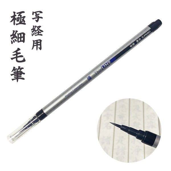 奈良筆の老舗メーカーが作った本格的な毛筆タッチの筆ペンです。穂先が直径2mmと非常に細く、写経初心者の方にも最適です。手紙やカードへの繊細な筆記にも向いており、書くたびになめらかな筆の運びを実感できます。