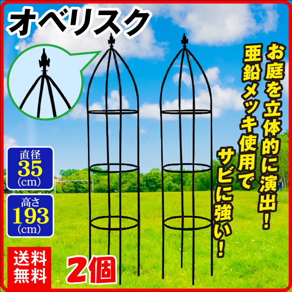 オベリスク 2個1組 直径 35 高さ 193 トレリス ガーデニング ガーデン クレマチス つる 薔薇 バラ 誘引 庭 ベランダ 植木鉢 玄関 亜鉛メッキ 園芸 国華園