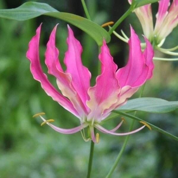 グロリオサはユニークな花形と花もちの良さから切花やアレンジに大人気!! つる性で、花壇で咲き誇る姿もステキ。