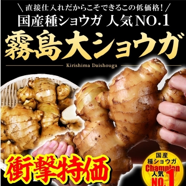 ●商品情報:世界有数のショウガの産地へバイヤー自ら出向き現地を視察。安くて品質の良い種ショウガの直接仕入れに成功しました。その種ショウガを、国華園の広大な圃場に再び植え付け、1年かけてじっくり育成した霧島大ショウガを皆さまの元へお届けします。