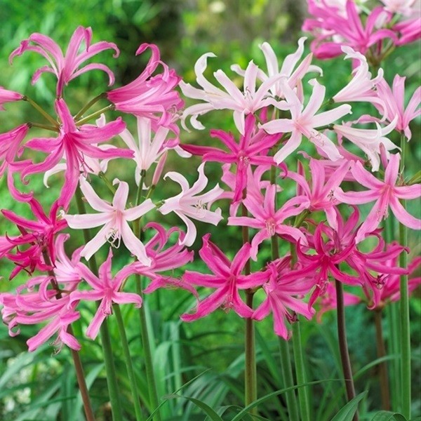 アマリネはホンアマリリス(ベラドンナリリー)とネリネの交配種。ネリネ同様、花弁が輝くように美しいです。