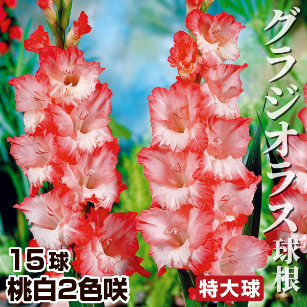 グラジオラス 球根 桃白2色咲 特大球(球周約14cm) 15球 グラジオラスの球根 春植え球根