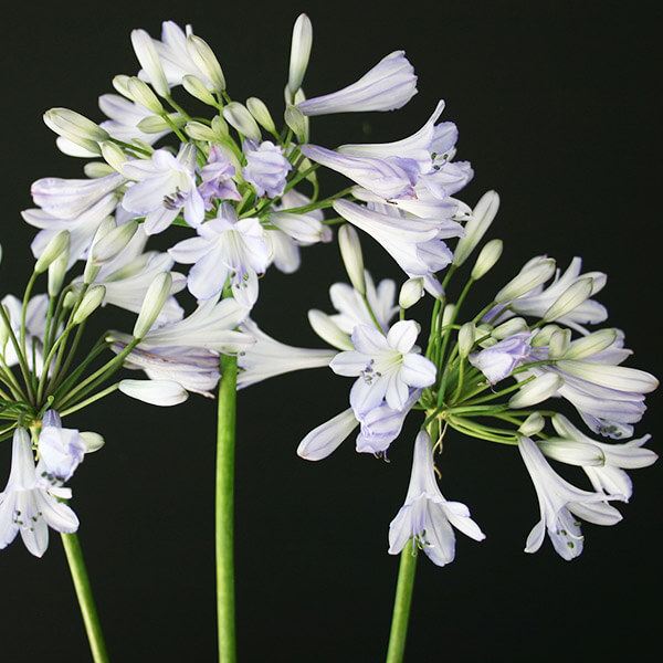 やや下向きに花を咲かせる清楚なアガパンサス。 花径約11cm。ユリ科。