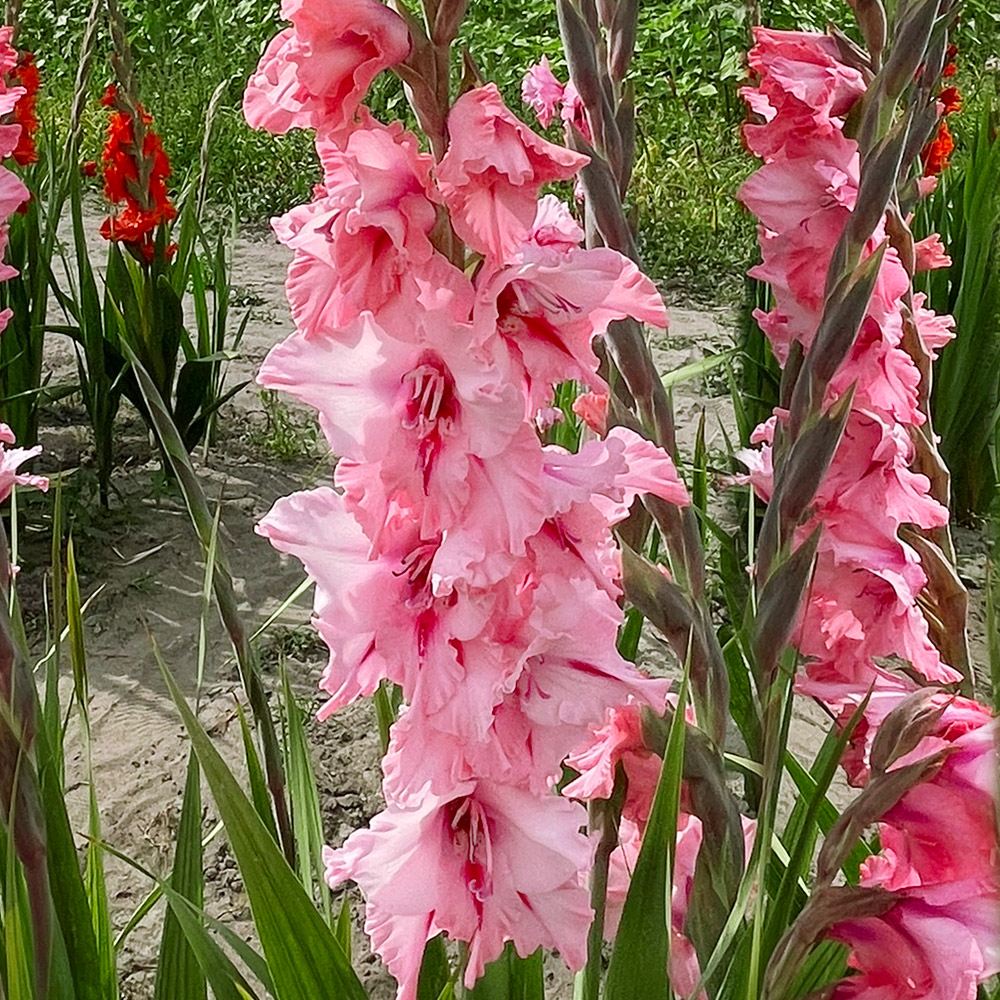 グラジオラスは植え付け後約3か月で開花します。植え付けのタイミングをずらすことで長い期間お花を楽しめます。アヤメ科。