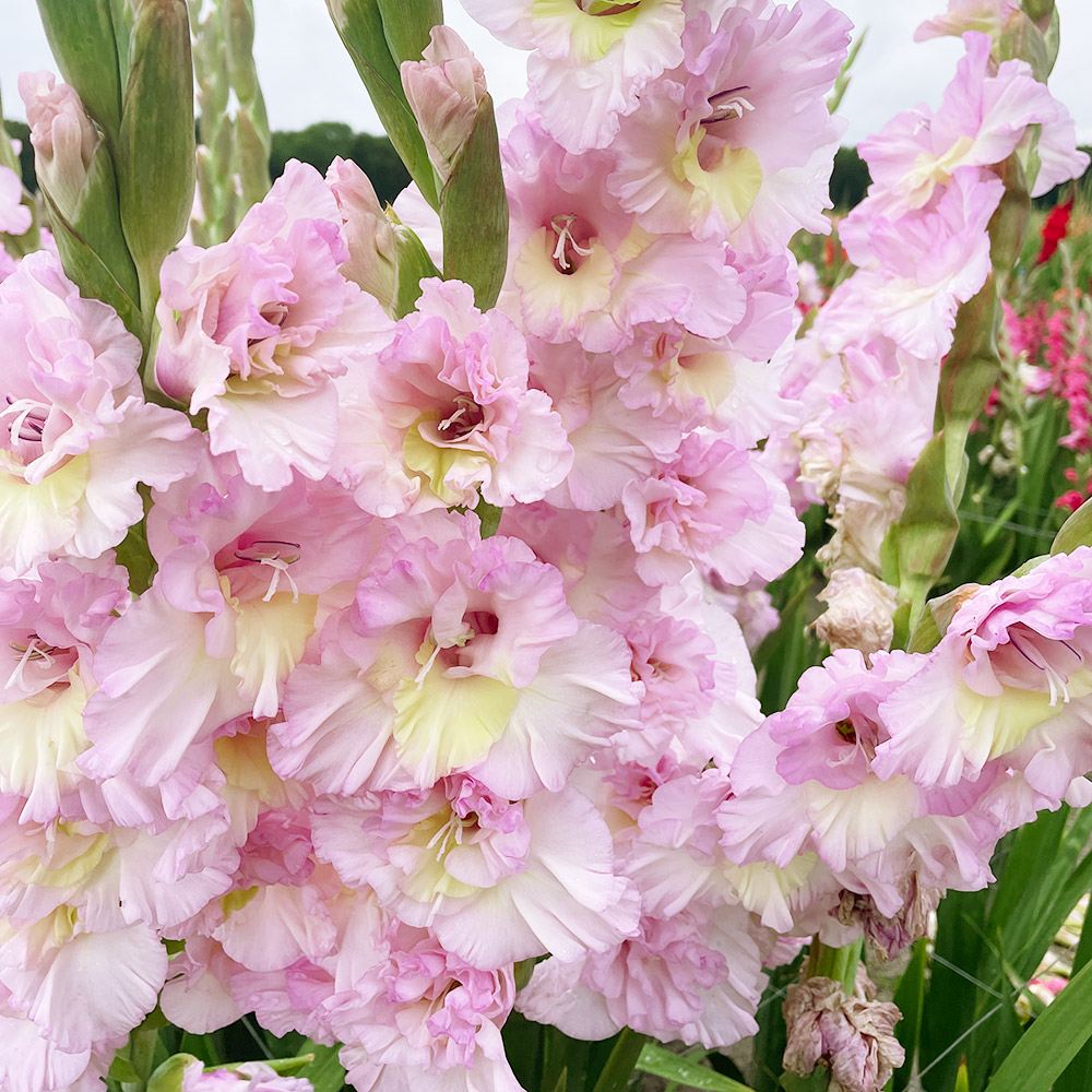 グラジオラスは植え付け後約3か月で開花します。植え付けのタイミングをずらすことで長い期間お花を楽しめます。アヤメ科。
