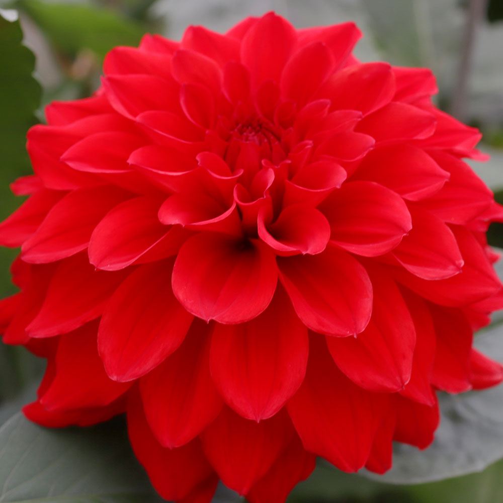 赤花のフォーマルデコラ咲きダリア。中大輪:花径21cm前後。秋田国際ダリア園の高品質な球根でお届けします。