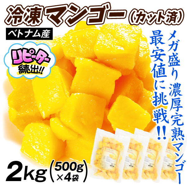 マンゴー 冷凍 完熟 カット済み 2kg(500g×4袋) 無添加 砂糖不使用 ベトナム産 大量販売 送料無料 フローズンマンゴー スイーツ 冷凍便 国華園