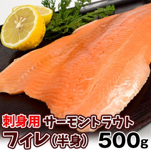 ●商品情報:生食可能なトラウトサーモンのフィレ(半身)をどーんと約500gお届け!お刺身やカルパッチョなど、たっぷり食べられて大満足!