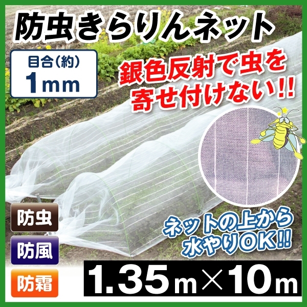 防虫ネット 防虫きらりんネット(1mm) 1.35m×10m 1枚1組 家庭菜園 ガーデニング 園芸資材 虫除け 虫よけ 国華園