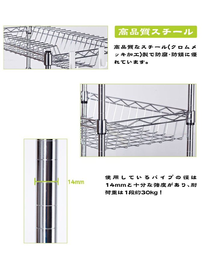 仕様 : パイプ径 14mm、耐荷重 1段 約30kg