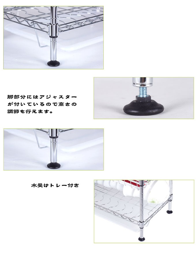 水切りラック 3段 1個 幅45・奥行25・高さ44 水切り かご スチール製 クロムメッキ加工 キッチン シンク 棚 大容量 食器 ラック 収納 スリム 国華園