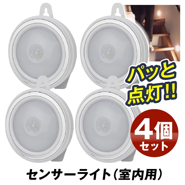 人が近づくとパッと自動点灯、離れると自動消灯するセンサーライトで、電源のない階段などでも大活躍!優しい電球色なのでLED特有の冷たい雰囲気がありません。