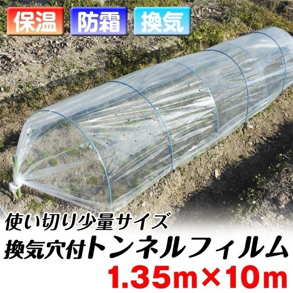 農業用フィルム 換気穴付きトンネルフィルム 1.35m×10m 1巻 通気 保温資材 保温性 防寒 防霜 凍害防止 植物用 菜園用 家庭菜園 トンネル栽培 農用 国華園