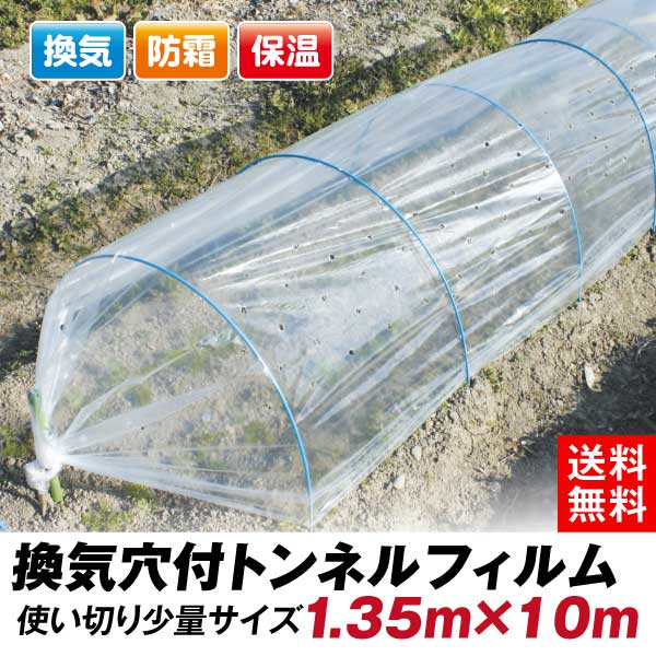 農業用フィルム 換気穴付きトンネルフィルム 1.35m×10m 1巻 使い切り 通気 保温資材 保温性 防寒 防霜 凍害防止 植物用 菜園用 家庭菜園 トンネル栽培 農用