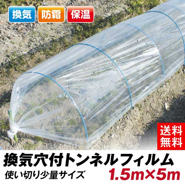 農業用フィルム 換気穴付きトンネルフィルム 1.5m×5m 1巻 使い切り 通気 保温資材 保温性 防寒 防霜 凍害防止 植物用 菜園用 家庭菜園 トンネル栽培 農用