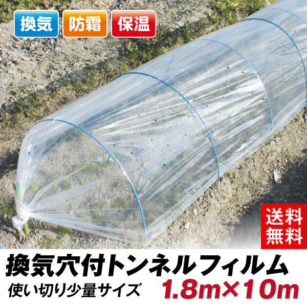 農業用フィルム 換気穴付きトンネルフィルム 1.8m×10m 1巻 使い切り 通気 保温資材 保温性 防寒 防霜 凍害防止 植物用 菜園用 家庭菜園 トンネル栽培 農用