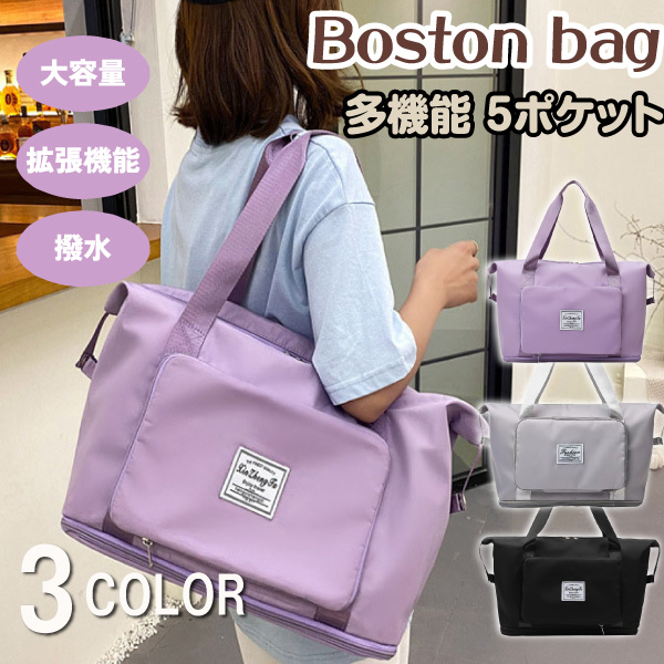 ボストンバッグ トートバッグ メンズ レディース 大容量 軽量 旅行バッグ 修学旅行 出張 通学 通勤 子供 学生 高校 中学 小学校 キャリーオンバッグ マザーズバッグ スポーツ ジム 合宿 1泊2日 2泊3日 機内持ち込み 手提げ 肩掛け 斜め掛け トラベルバッグ 折りたたみ 収納 コンパクト おしゃれ シンプル 無地 黒 ブラック グレー パープル 多機能 男女兼用