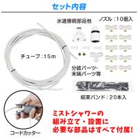 水道から水を供給し、ミスト上にして噴霧!大掛かりな工事などが必要なく、組み立ても簡単。スムーズに設置でき、抜群の効果を発揮するミストシャワーキットです。 |