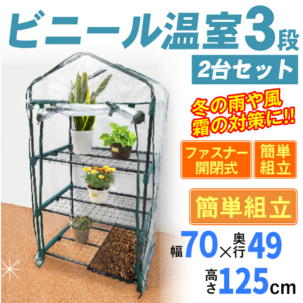 ビニールハウス ビニール温室 3段 2個セット 温室 家庭用 育苗 園芸 DIY ガーデンハウス 農業 ミニ 温室棚 家庭菜園 onshitsu 国華園