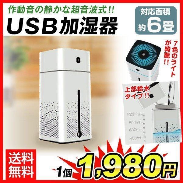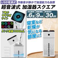 超音波式 加湿器 USB スクエア 1個 アロマオイル対応 おしゃれ 静音 LED ライト付 小型 対応面積6畳 国華園