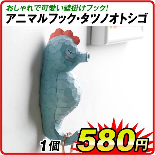 フック 壁掛け アニマルフック・タツノオトシゴ 1個 ウォールフック テールフック ガーデン 子供 かわいい ポリ製 動物 洋服 帽子 ほうき プレゼント 国華園