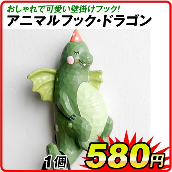 フック 壁掛け アニマルフック・ドラゴン 1個 ウォールフック テールフック ガーデン 子供 かわいい ポリ製 動物 洋服 国華園