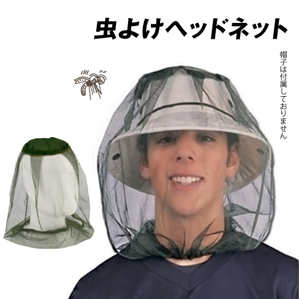 虫よけヘッドネット 1個 夏 蚊よけ 虫よけ フェイスガード アウトドア モスキートネット 蚊 アブ ブヨ 害虫 対策 国華園