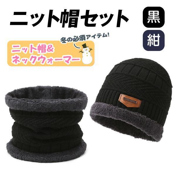 ニット帽セット 1セット ニット帽&ネックウォーマー 紺 黒 冬 ファッション 防寒 男女兼用