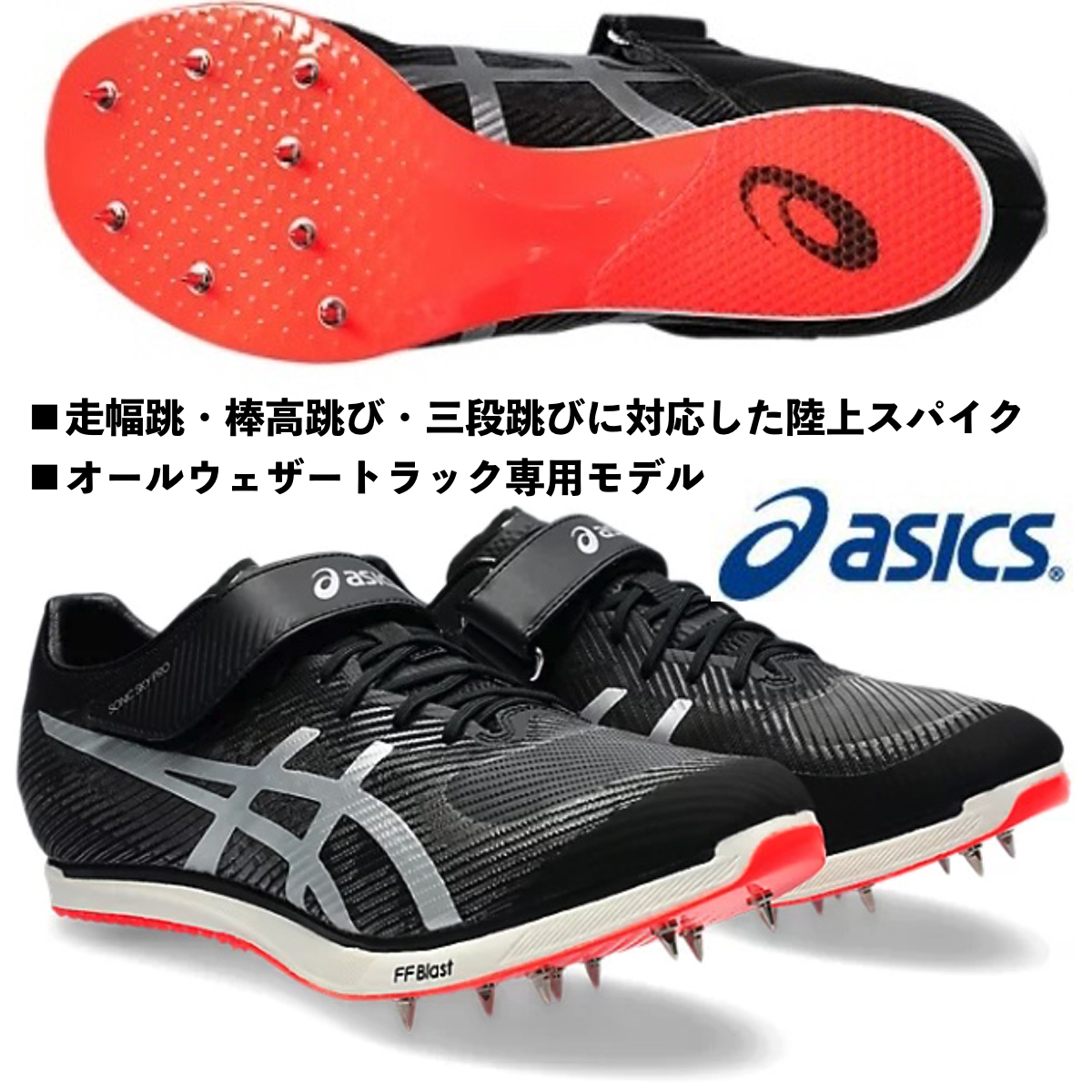 アシックス/走り幅跳び・棒高跳び・三段跳び用陸上スパイク/ソニック スカイ プロ/SONIC SKY PRO/1093A218 001/オールウェザートラック専用/返品交換不可商品