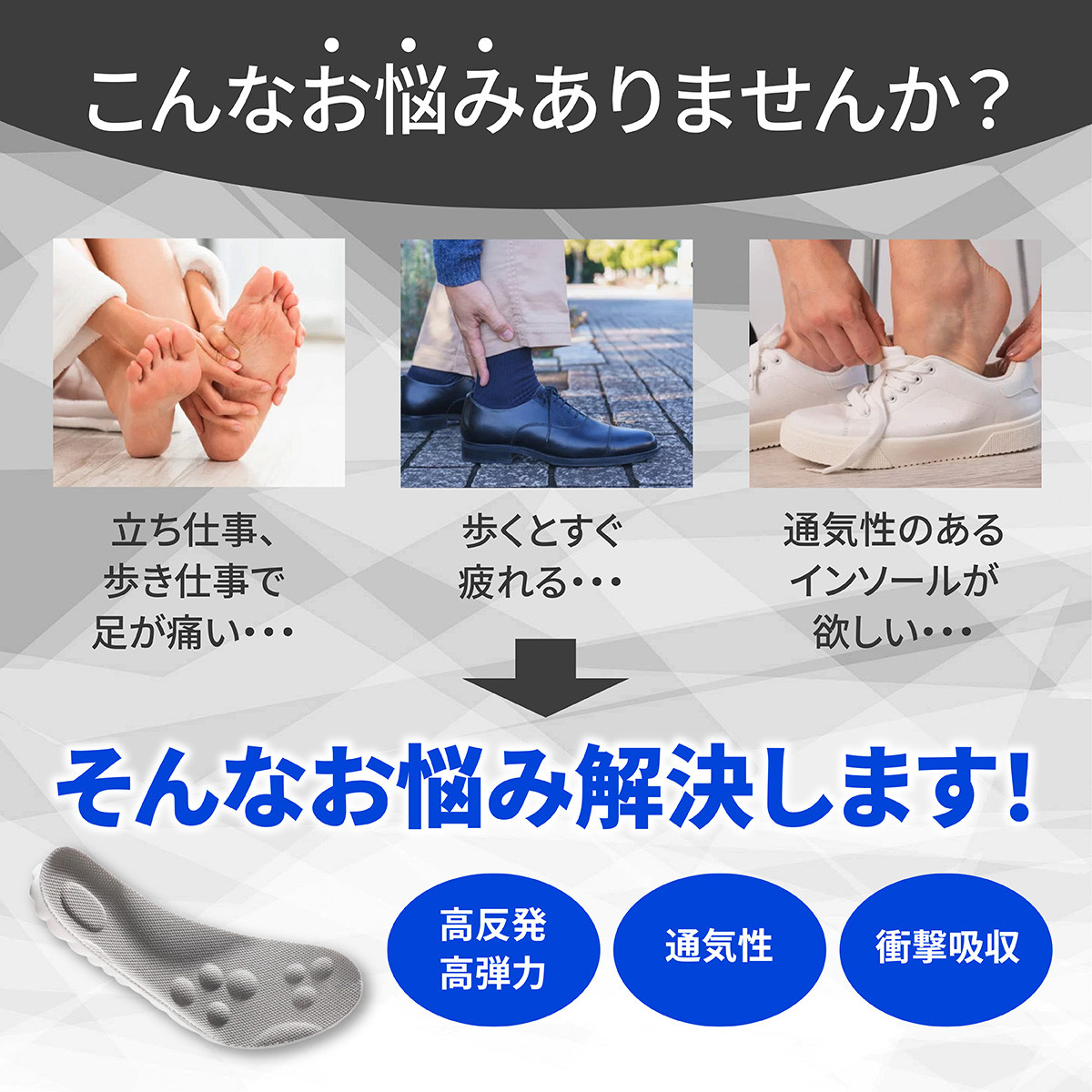 インソール 疲れない 衝撃吸収 足底筋膜炎 立ち仕事 中敷き アーチサポート 足つぼ o脚 扁平足 スポーツ 大きいサイズ