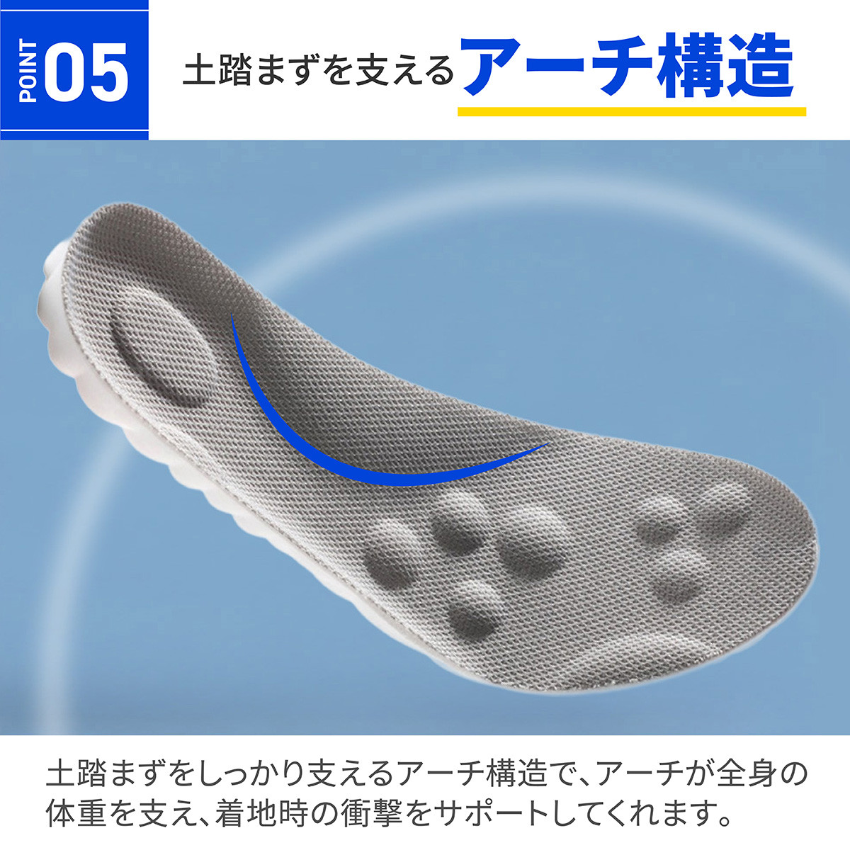 土踏まずをしっかり支えるアーチ構造を持つことで