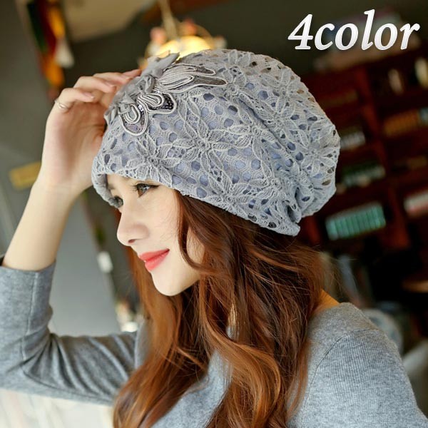 帽子 レディース ニット帽 レース 総レース エレガント フェミニン ガーリースタイル 薄手 防寒 送料無料 メール便