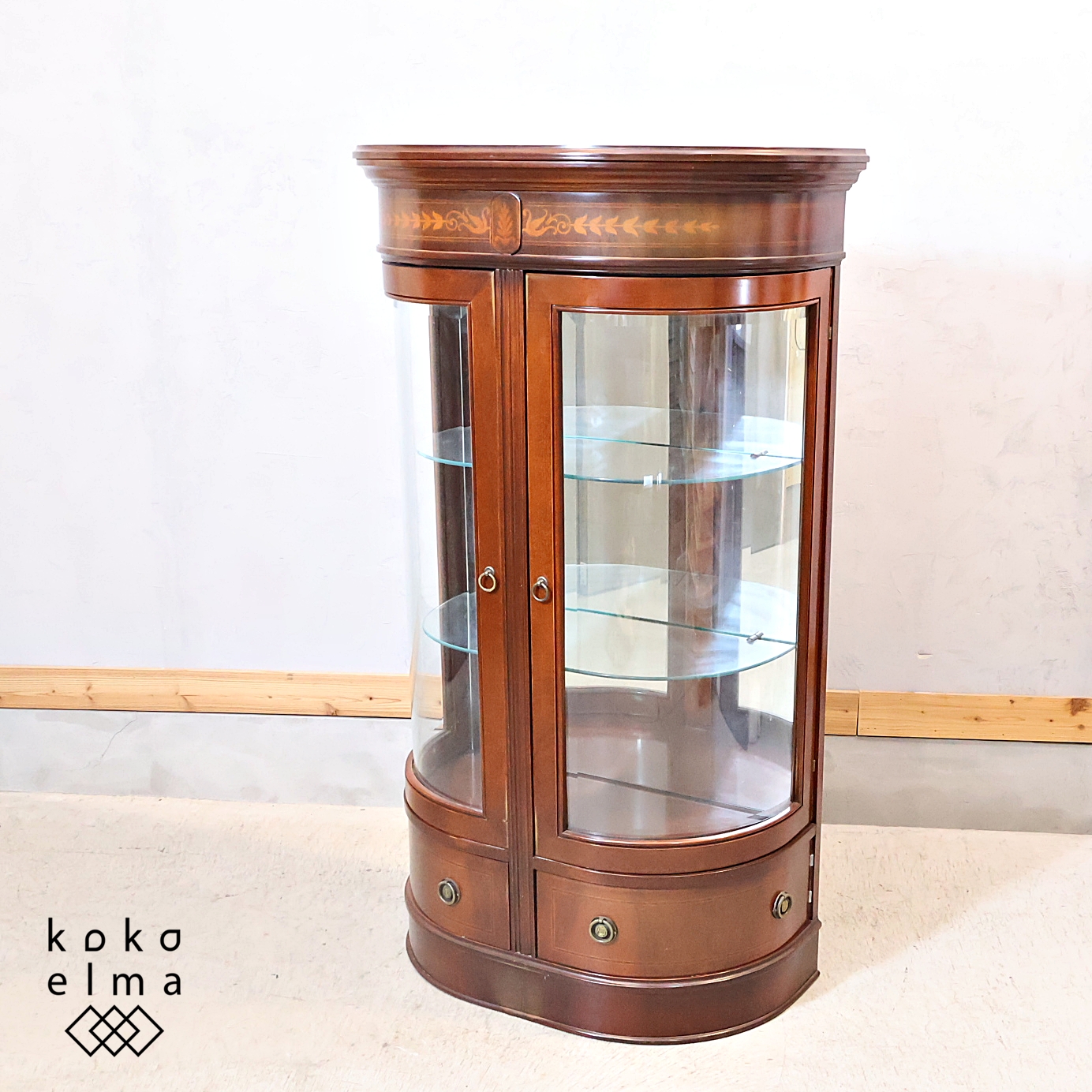 アンティーク調 キュリオケース 飾り棚 ガラス キャビネット 収納家具 クラシック エレガント 象嵌加工 天然木 ショーケース FC425