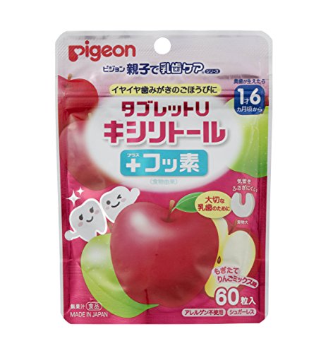 ピジョン 親子で乳歯ケア タブレットU キシリトール +フッ素 気管をふさぎにくい 子ども オーラルケア もぎたてりんごミックス味 60粒入