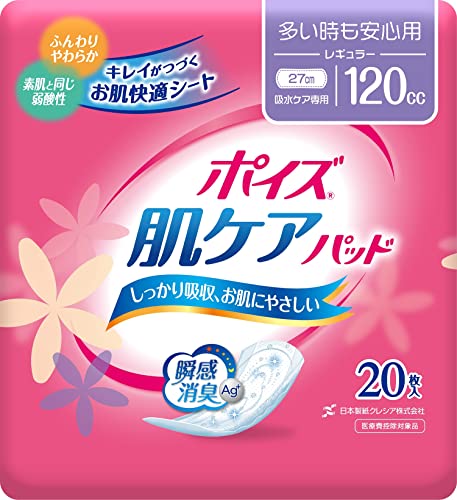 ポイズ 肌ケアパッド 多い時も安心用(レギュラー)120cc 20枚 (女性の軽い尿もれ用)