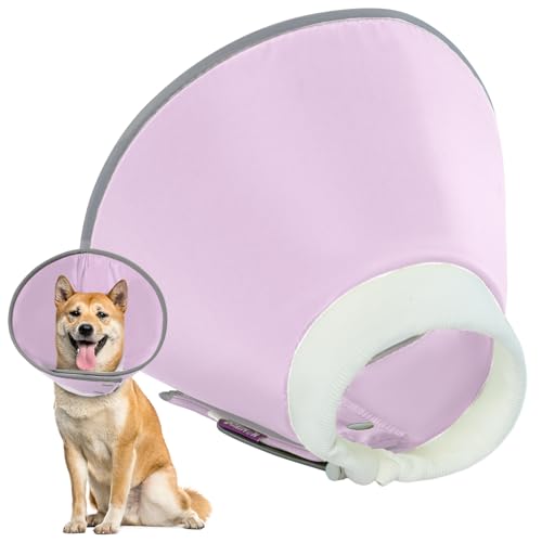 ・軽量でソフトな素材:このエリザベスカラー 犬の裏地はわずかな弾力性のあるEVA製で、表地は防水性があり、お手入れが簡単です。 首の周りにフィットする生地は柔らかく伸縮性があり、ペットにさらなる快適さと保護を提供します。 このエリザベスカラー 猫は非常に軽量で、愛犬が普通に飲食したり遊んだりするのにストレスを与えません。梱包方法の制限により、届いたばかりの商品には折り目がついていますが、逆方向に折ることで折り目を徐々に目立たなくすることができますので、ご了承ください