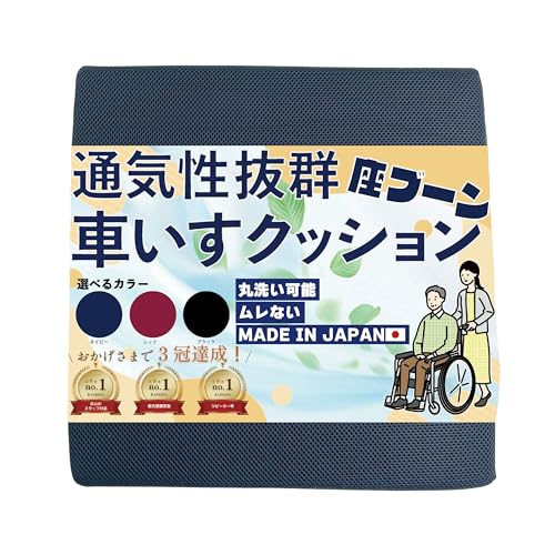 通気・ムレない国産 高反発 車椅子 クッション 座ブーン ネイビー 滑り止め仕様 Made in Japan 車いす