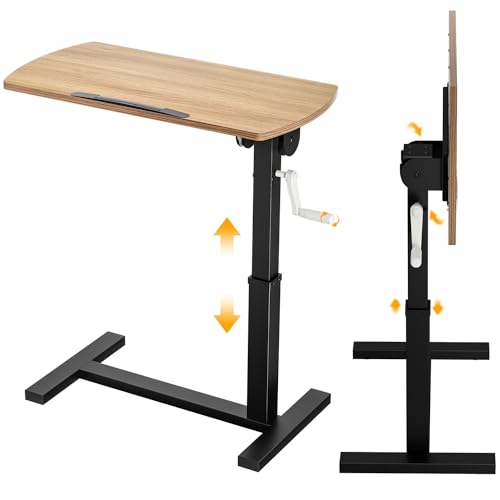 サイドテーブル 昇降式デスク 在宅ワーク PCデスク 高さ無段階調節 介護用 ベッドテーブル (角度調整 木の色)