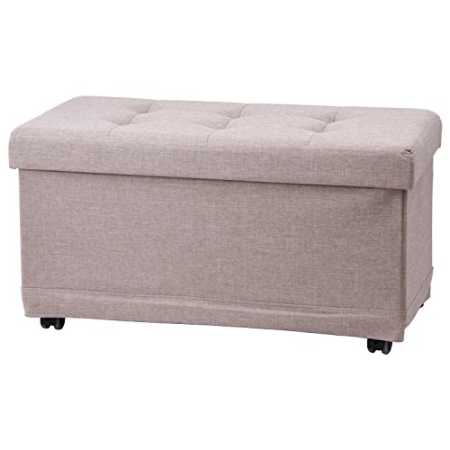 不二貿易 収納スツール ボックスベンチ 幅76×奥行38×高さ39.5cm ベージュ 折りたたみ オットマン キャスター付き ベルク 51303