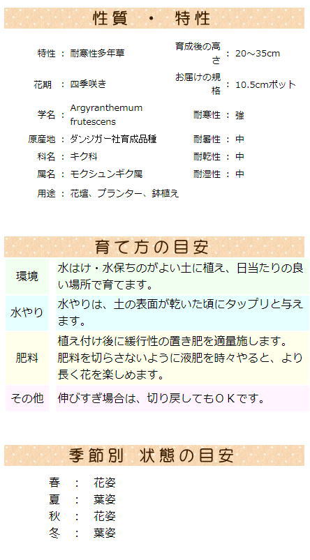 繊細な花ですがコンパクトかつボリュームがある花姿で、四季咲き性のあるマーガレットのシリーズです。