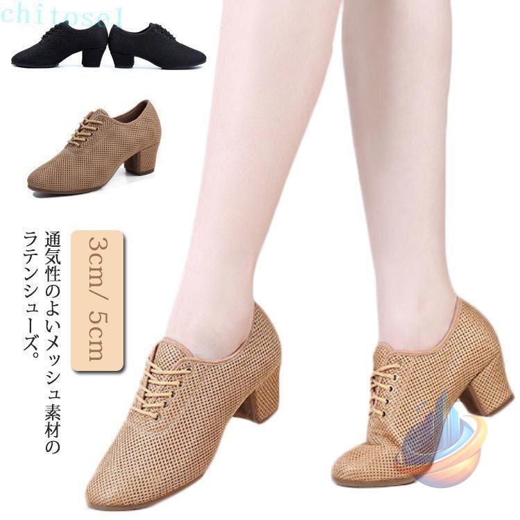 レースアップ ダンスシューズ メッシュ ラテンダンスシューズ 社交ダンス 5cmゾンチー通気性 3cm 社交ダンスシューズ 太ヒール 女性 ローヒール レディース 演奏