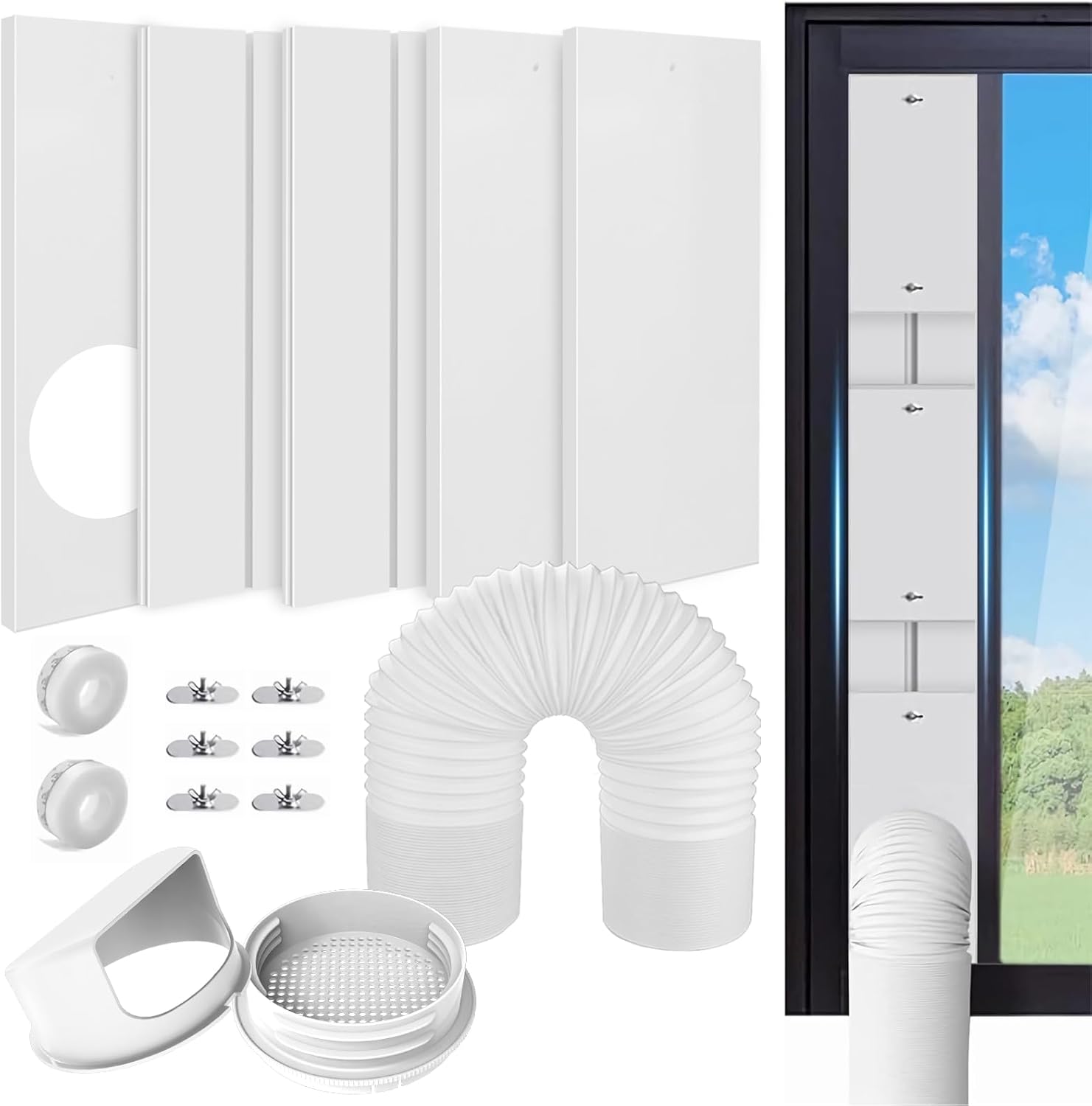 【5枚セット】窓用ダクトパネル 直径13cm&15cmホース用 雨よけカバー付き スポットクーラー ポータブルエアコン対応 引き違い窓・上げ下げ窓・テラス窓用
