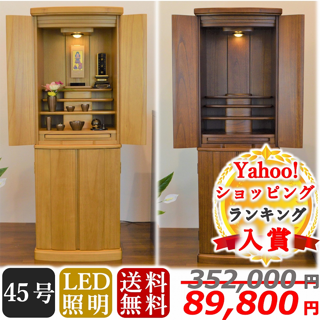 【特別価格 89,800円→86,800円】モダン仏壇 45号 光月 ナチュラル ブラウン 送料無料 直置きタイプ 桐 無垢 おしゃれ 納骨 上下セット 仏具セット