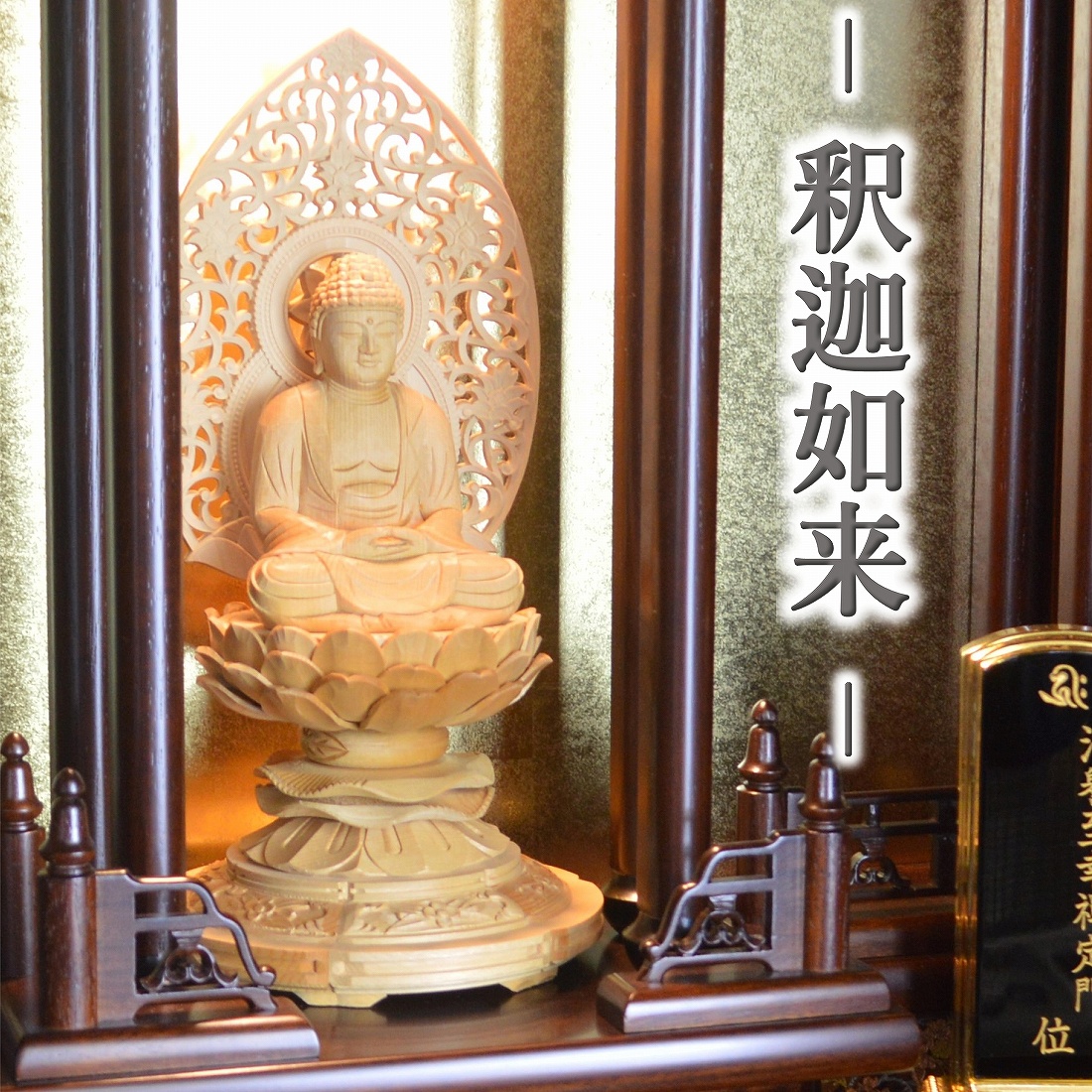 仏像 釈迦如来像 曹洞宗 臨済宗 禅宗 桧木 2.0寸 2.5寸 仏具 小さい 本尊 木彫り 丸座 六角