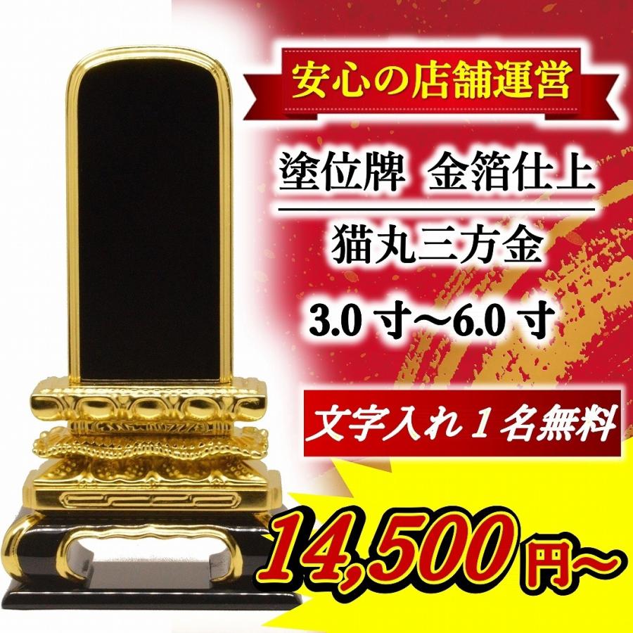 【特別値引き】位牌 名入れ1名様無料 猫丸 三方金 【金箔仕上】3.0寸 〜 6.0寸 モダン位牌 モダン 名入れ 塗位牌 高級