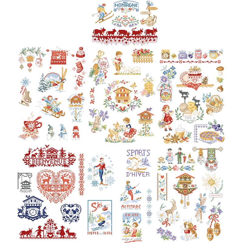 50種類の様々なサイズのモチーフが詰まった、山々の壮大な物語がクロスステッチで紡がれます。